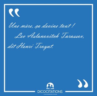 ![Une mère, ça devine tout [...] - Lev Aslanovitch Tarassov, dit Henri Troyat... Une mère, ça devine tout [...] - Lev Aslanovitch Tarassov, dit Henri Troyat...](/imagescitations/Une_mere_ca_devine_tout_-_Lev_Aslanovitch_Tarassov_dit_Henri_Troyat-124758.jpg)