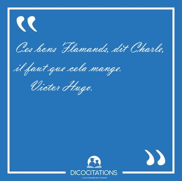 Ces bons Flamands, dit Charle, il faut que cela mange.