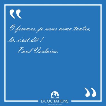 ![O femmes, je vous aime toutes, là, c'est dit [...] - Paul Verlaine... O femmes, je vous aime toutes, là, c'est dit [...] - Paul Verlaine...](/imagescitations/O_femmes_je_vous_aime_toutes_la_c_est_dit_-_Paul_Verlaine-125789.jpg)