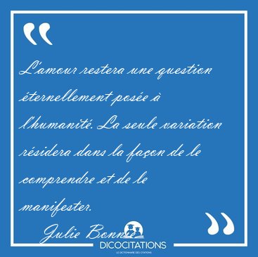 ![L'amour restera une question éternellement posée à l'humanité. [...] - Julie Bonnie... L'amour restera une question éternellement posée à l'humanité. [...] - Julie Bonnie...](/imagescitations/L_amour_restera_une_question_eternellement_posee_a_l_humanite_-_Julie_Bonnie-125822.jpg)