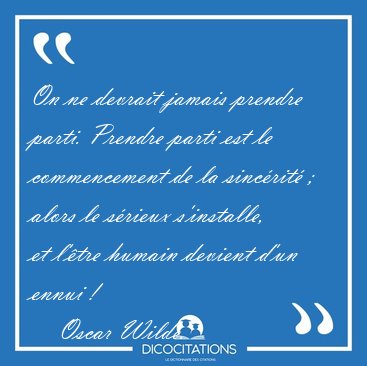 On ne devrait jamais prendre parti. Prendre parti est le commencement de la sincérité ; alors le sérieux s'installe, et l'être humain devient d'un ennui !