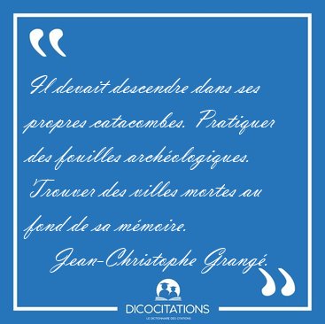 ![Il devait descendre dans ses propres catacombes. Pratiquer des [...] - Jean-Christophe Grangé... Il devait descendre dans ses propres catacombes. Pratiquer des [...] - Jean-Christophe Grangé...](/imagescitations/Il_devait_descendre_dans_ses_propres_catacombes_Pratiquer_des_-_Jean-Christophe_Grange-126935.jpg)