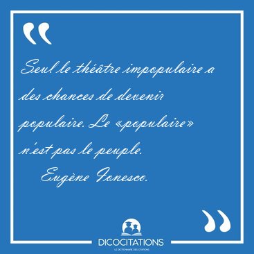 ![Seul le théâtre impopulaire a des chances de devenir populaire. [...] - Eugène Ionesco... Seul le théâtre impopulaire a des chances de devenir populaire. [...] - Eugène Ionesco...](/imagescitations/Seul_le_theatre_impopulaire_a_des_chances_de_devenir_populaire_-_Eugene_Ionesco-12736.jpg)