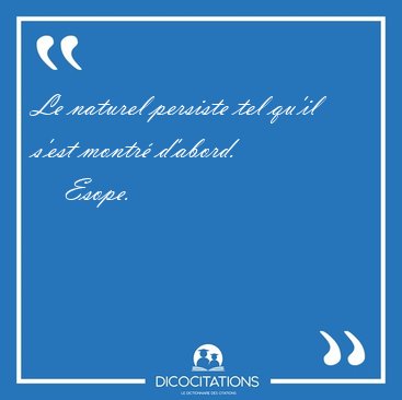 ![Le naturel persiste tel qu'il s'est montré [...] - Esope... Le naturel persiste tel qu'il s'est montré [...] - Esope...](/imagescitations/Le_naturel_persiste_tel_qu_il_s_est_montre_-_Esope-127409.jpg)