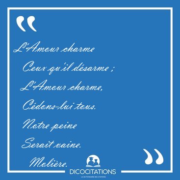 ![L'Amour charme Ceux qu'il désarme ; L'Amour charme, [...] - Molière... L'Amour charme Ceux qu'il désarme ; L'Amour charme, [...] - Molière...](/imagescitations/L_Amour_charme_Ceux_qu_il_desarme_L_Amour_charme_-_Moliere-127451.jpg)
