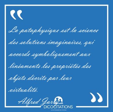 ![La pataphysique est la science des solutions imaginaires, qui [...] - Alfred Jarry... La pataphysique est la science des solutions imaginaires, qui [...] - Alfred Jarry...](/imagescitations/La_pataphysique_est_la_science_des_solutions_imaginaires_qui_-_Alfred_Jarry-12780.jpg)