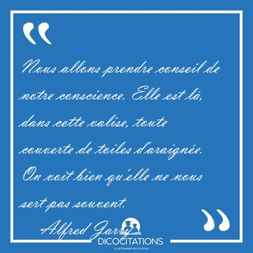![Nous allons prendre conseil de notre conscience. Elle est là, [...] - Alfred Jarry... Nous allons prendre conseil de notre conscience. Elle est là, [...] - Alfred Jarry...](/imagescitations/Nous_allons_prendre_conseil_de_notre_conscience_Elle_est_la_-_Alfred_Jarry-12784.jpg)