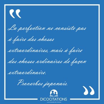 La perfection ne consiste pas à faire des choses extraordinaires, mais à faire des choses ordinaires de façon extraordinaire.