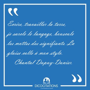 ![Ecrire, travailler la terre, je sarcle le langage, bouscule les [...] - Chantal Dupuy-Dunier... Ecrire, travailler la terre, je sarcle le langage, bouscule les [...] - Chantal Dupuy-Dunier...](/imagescitations/Ecrire_travailler_la_terre_je_sarcle_le_langage_bouscule_les_-_Chantal_Dupuy-Dunier-128197.jpg)