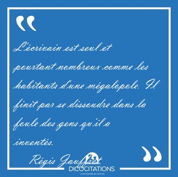 Plus sur cette citation >> Citation de Régis Jauffret (n° 128894) - Ajouter à mon carnet de citations