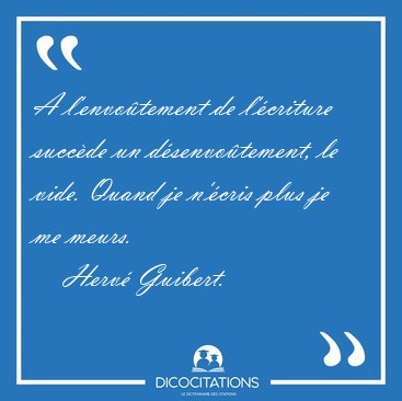 ![A l'envoûtement de l'écriture succède un désenvoûtement, le [...] - Hervé Guibert... A l'envoûtement de l'écriture succède un désenvoûtement, le [...] - Hervé Guibert...](/imagescitations/A_l_envoutement_de_l_ecriture_succede_un_desenvoutement_le_-_Herve_Guibert-129090.jpg)