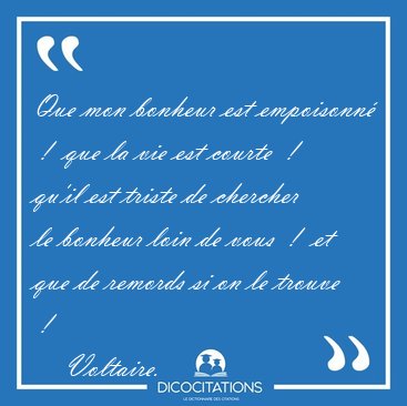 ![Que mon bonheur est empoisonné ! que la vie est courte ! [...] - Voltaire... Que mon bonheur est empoisonné ! que la vie est courte ! [...] - Voltaire...](/imagescitations/Que_mon_bonheur_est_empoisonne_que_la_vie_est_courte_-_Voltaire-129167.jpg)