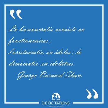 ![La bureaucratie consiste en fonctionnaires ; l'aristocratie, en [...] - George Bernard Shaw... La bureaucratie consiste en fonctionnaires ; l'aristocratie, en [...] - George Bernard Shaw...](/imagescitations/La_bureaucratie_consiste_en_fonctionnaires_l_aristocratie_en_-_George_Bernard_Shaw-129386.jpg)