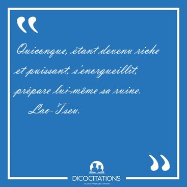 Quiconque, étant devenu riche et puissant, s'enorgueillit, prépare lui-même sa ruine.