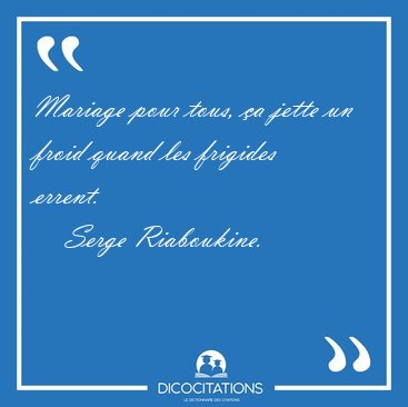![Mariage pour tous, ça jette un froid quand les frigides [...] - Serge Riaboukine... Mariage pour tous, ça jette un froid quand les frigides [...] - Serge Riaboukine...](/imagescitations/Mariage_pour_tous_ca_jette_un_froid_quand_les_frigides_-_Serge_Riaboukine-130027.jpg)