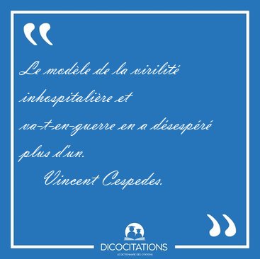 ![Le modèle de la virilité inhospitalière et va-t-en-guerre en a [...] - Vincent Cespedes... Le modèle de la virilité inhospitalière et va-t-en-guerre en a [...] - Vincent Cespedes...](/imagescitations/Le_modele_de_la_virilite_inhospitaliere_et_va-t-en-guerre_en_a_-_Vincent_Cespedes-130080.jpg)