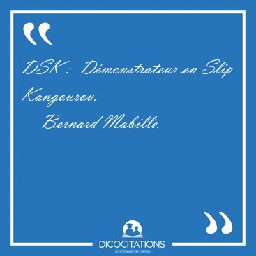 ![DSK : Démonstrateur en Slip [...] - Bernard Mabille... DSK : Démonstrateur en Slip [...] - Bernard Mabille...](/imagescitations/DSK_Demonstrateur_en_Slip_-_Bernard_Mabille-130174.jpg)