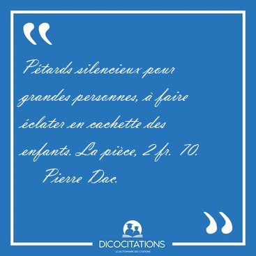 ![Pétards silencieux pour grandes personnes, à faire éclater en [...] - Pierre Dac... Pétards silencieux pour grandes personnes, à faire éclater en [...] - Pierre Dac...](/imagescitations/Petards_silencieux_pour_grandes_personnes_a_faire_eclater_en_-_Pierre_Dac-130202.jpg)