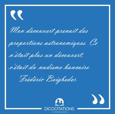 ![Mon découvert prenait des proportions astronomiques. Ce n'était [...] - Frédéric Beigbeder... Mon découvert prenait des proportions astronomiques. Ce n'était [...] - Frédéric Beigbeder...](/imagescitations/Mon_decouvert_prenait_des_proportions_astronomiques_Ce_n_etait_-_Frederic_Beigbeder-130359.jpg)