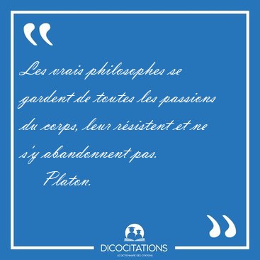 Les vrais philosophes se gardent de toutes les passions du corps, leur résistent et ne s'y abandonnent pas.