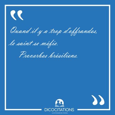 ![Quand il y a trop d'offrandes, le saint se [...] - Proverbes brésiliens... Quand il y a trop d'offrandes, le saint se [...] - Proverbes brésiliens...](/imagescitations/Quand_il_y_a_trop_d_offrandes_le_saint_se_-_Proverbes_bresiliens-131156.jpg)