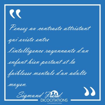 ![Pensez au contraste attristant qui existe entre l'intelligence [...] - Sigmund Freud... Pensez au contraste attristant qui existe entre l'intelligence [...] - Sigmund Freud...](/imagescitations/Pensez_au_contraste_attristant_qui_existe_entre_l_intelligence_-_Sigmund_Freud-131993.jpg)