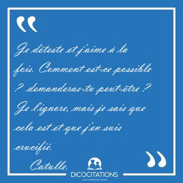 Je déteste et j'aime à la fois. Comment est-ce possible ? demanderas-tu peut-être ? Je l'ignore, mais je sais que cela est et que j'en suis crucifié.