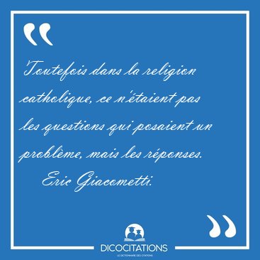 Toutefois dans la religion catholique, ce n'étaient pas les questions qui posaient un problème, mais les réponses.
