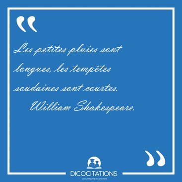 ![Les petites pluies sont longues, les tempêtes soudaines sont [...] - William Shakespeare... Les petites pluies sont longues, les tempêtes soudaines sont [...] - William Shakespeare...](/imagescitations/Les_petites_pluies_sont_longues_les_tempetes_soudaines_sont_-_William_Shakespeare-132383.jpg)
