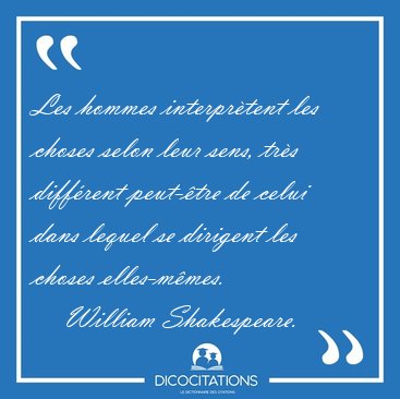 ![Les hommes interprètent les choses selon leur sens, très [...] - William Shakespeare... Les hommes interprètent les choses selon leur sens, très [...] - William Shakespeare...](/imagescitations/Les_hommes_interpretent_les_choses_selon_leur_sens_tres_-_William_Shakespeare-132416.jpg)