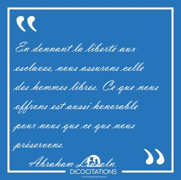 ![En donnant la liberté aux esclaves, nous assurons celle des [...] - Abraham Lincoln... En donnant la liberté aux esclaves, nous assurons celle des [...] - Abraham Lincoln...](/imagescitations/En_donnant_la_liberte_aux_esclaves_nous_assurons_celle_des_-_Abraham_Lincoln-132603.jpg)