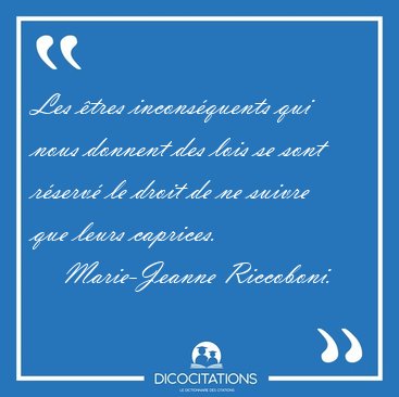 Les êtres inconséquents qui nous donnent des lois se sont réservé le droit de ne suivre que leurs caprices.