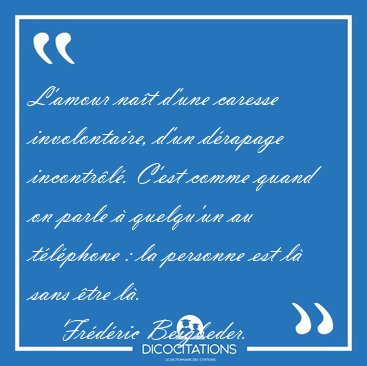 ![L'amour naît d'une caresse involontaire, d'un dérapage [...] - Frédéric Beigbeder... L'amour naît d'une caresse involontaire, d'un dérapage [...] - Frédéric Beigbeder...](/imagescitations/L_amour_nait_d_une_caresse_involontaire_d_un_derapage_-_Frederic_Beigbeder-133175.jpg)