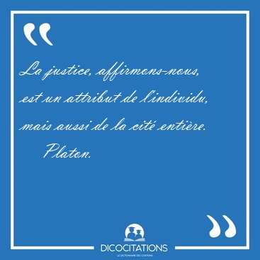 La justice, affirmons-nous, est un attribut de l'individu, mais aussi de la cité entière.