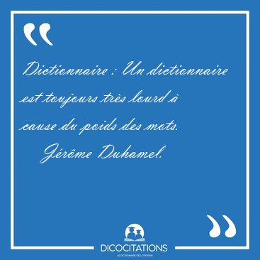 ![Dictionnaire : Un dictionnaire est toujours très lourd à cause [...] - Jérôme Duhamel... Dictionnaire : Un dictionnaire est toujours très lourd à cause [...] - Jérôme Duhamel...](/imagescitations/Dictionnaire_Un_dictionnaire_est_toujours_tres_lourd_a_cause_-_Jerome_Duhamel-133665.jpg)