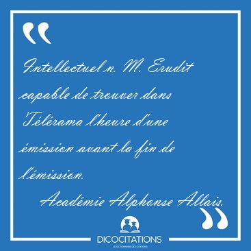![Intellectuel n. M. Erudit capable de trouver dans Télérama [...] - Académie Alphonse Allais... Intellectuel n. M. Erudit capable de trouver dans Télérama [...] - Académie Alphonse Allais...](/imagescitations/Intellectuel_n_M_Erudit_capable_de_trouver_dans_Telerama_-_Academie_Alphonse_Allais-134036.jpg)