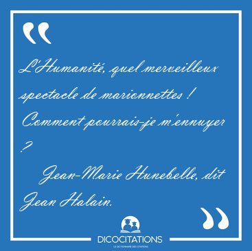 L'Humanité, quel merveilleux spectacle de marionnettes ! Comment pourrais-je m'ennuyer ?
