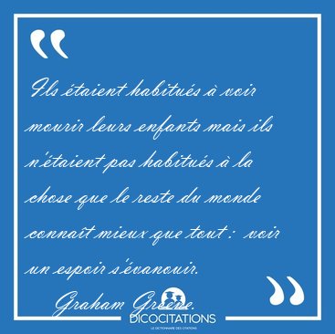 ![Ils étaient habitués à voir mourir leurs enfants mais ils [...] - Graham Greene... Ils étaient habitués à voir mourir leurs enfants mais ils [...] - Graham Greene...](/imagescitations/Ils_etaient_habitues_a_voir_mourir_leurs_enfants_mais_ils_-_Graham_Greene-134497.jpg)