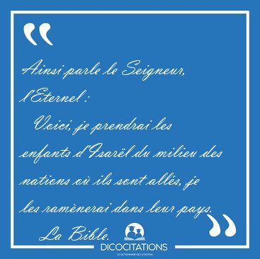 ![Ainsi parle le Seigneur, l'Eternel : Voici, je prendrai les [...] - La Bible... Ainsi parle le Seigneur, l'Eternel : Voici, je prendrai les [...] - La Bible...](/imagescitations/Ainsi_parle_le_Seigneur_l_Eternel_Voici_je_prendrai_les_-_La_Bible-135257.jpg)