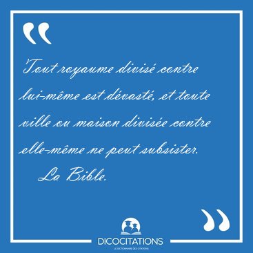 Tout royaume divisé contre lui-même est dévasté, et toute ville ou maison divisée contre elle-même ne peut subsister.