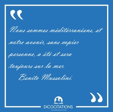 ![Nous sommes méditérranéens, et notre avenir, sans copier [...] - Benito Mussolini... Nous sommes méditérranéens, et notre avenir, sans copier [...] - Benito Mussolini...](/imagescitations/Nous_sommes_mediterraneens_et_notre_avenir_sans_copier_-_Benito_Mussolini-135541.jpg)