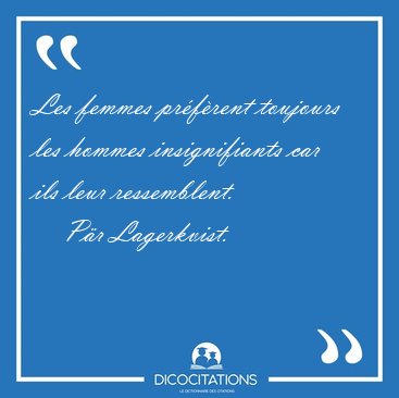 ![Les femmes préfèrent toujours les hommes insignifiants car ils [...] - Pär Lagerkvist... Les femmes préfèrent toujours les hommes insignifiants car ils [...] - Pär Lagerkvist...](/imagescitations/Les_femmes_preferent_toujours_les_hommes_insignifiants_car_ils_-_Par_Lagerkvist-135709.jpg)