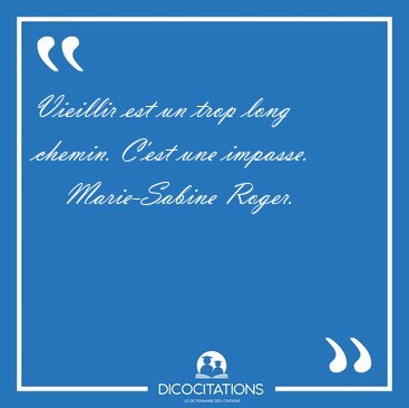 ![Vieillir est un trop long chemin. C'est une [...] - Marie-Sabine Roger... Vieillir est un trop long chemin. C'est une [...] - Marie-Sabine Roger...](/imagescitations/Vieillir_est_un_trop_long_chemin_C_est_une_-_Marie-Sabine_Roger-136004.jpg)