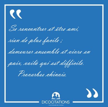 Se rencontrer et être ami, rien de plus facile ; demeurer ensemble et vivre en paix, voilà qui est difficile.