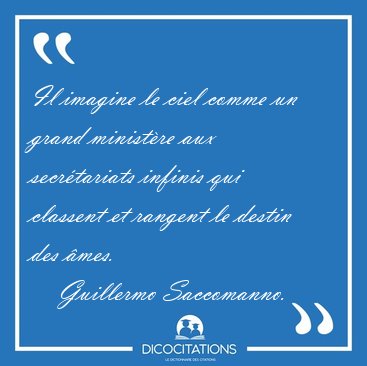 ![Il imagine le ciel comme un grand ministère aux secrétariats [...] - Guillermo Saccomanno... Il imagine le ciel comme un grand ministère aux secrétariats [...] - Guillermo Saccomanno...](/imagescitations/Il_imagine_le_ciel_comme_un_grand_ministere_aux_secretariats_-_Guillermo_Saccomanno-136813.jpg)