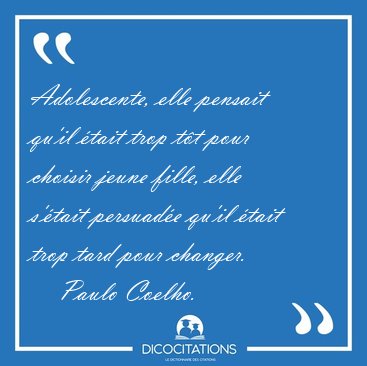 ![Adolescente, elle pensait qu'il était trop tôt pour choisir [...] - Paulo Coelho... Adolescente, elle pensait qu'il était trop tôt pour choisir [...] - Paulo Coelho...](/imagescitations/Adolescente_elle_pensait_qu_il_etait_trop_tot_pour_choisir_-_Paulo_Coelho-137024.jpg)