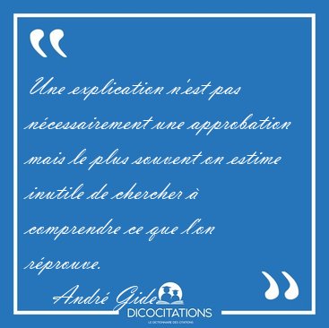 ![Une explication n'est pas nécessairement une approbation mais le [...] - André Gide... Une explication n'est pas nécessairement une approbation mais le [...] - André Gide...](/imagescitations/Une_explication_n_est_pas_necessairement_une_approbation_mais_le_-_Andre_Gide-137318.jpg)