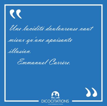 ![Une lucidité douloureuse vaut mieux qu'une apaisante [...] - Emmanuel Carrère... Une lucidité douloureuse vaut mieux qu'une apaisante [...] - Emmanuel Carrère...](/imagescitations/Une_lucidite_douloureuse_vaut_mieux_qu_une_apaisante_-_Emmanuel_Carrere-137369.jpg)
