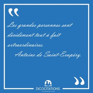 Les grandes personnes sont décidément tout à fait extraordinaires.