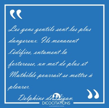 ![Les gens gentils sont les plus dangereux. Ils menacent [...] - Delphine de Vigan... Les gens gentils sont les plus dangereux. Ils menacent [...] - Delphine de Vigan...](/imagescitations/Les_gens_gentils_sont_les_plus_dangereux_Ils_menacent_-_Delphine_de_Vigan-137646.jpg)